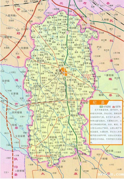 杞县位于河南省东部,隶属八朝古都开封市,总面积1243平方公里,耕地133万亩,辖21个乡镇、总人口120多万,是开封市第一人口大县。杞县历史悠久,商朝时建立杞国,距今已有3700年的历史。杞县人杰地灵,历代名人辈出,古有商代名相伊尹、西汉刘邦著名谋士郦食其,东汉著名文学家、书法家蔡邕,女诗人蔡文姬等历史名流。近代有著名记者穆青,当代有香港、澳门区旗区徽设计者肖红,2008年北京奥运会会徽设计者张武等知名人士。 杞县是农业大县,素有“中原粮仓”之美称,现已建成大蒜、辣椒、花生、棉花、小麦、菜花、食用菌等农产品生产基地。杞县又是畜牧大县,现已建成规模养殖场1300多家,畜牧业产值已占农业总产值的40%以上。近年来,杞县相继获得“全国棉花产量百强县”,“全国无公害农产品生产基地县”,“全国生猪调出大县”,“全省畜牧业发展重点县”,“全省农业结构调整十强县”,“全省产粮大县”等荣誉称号。